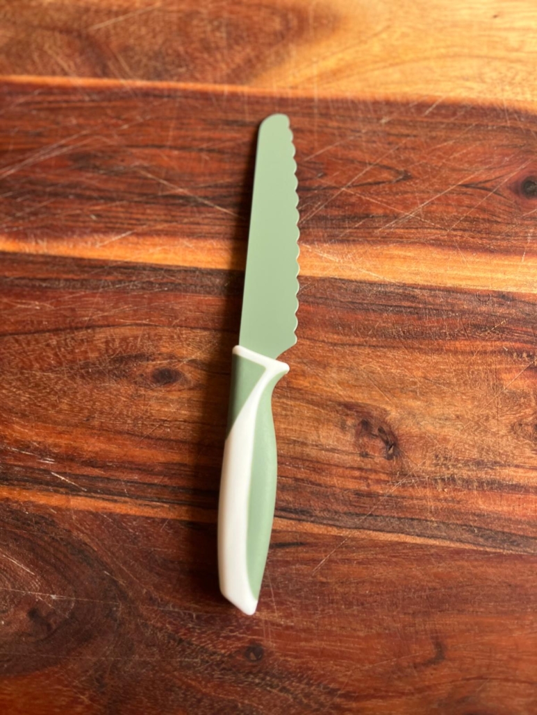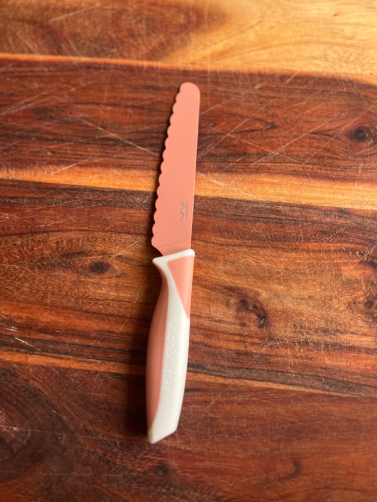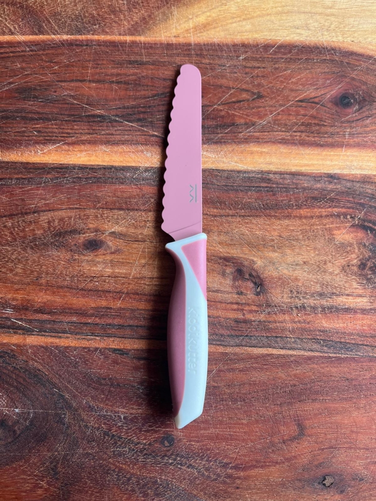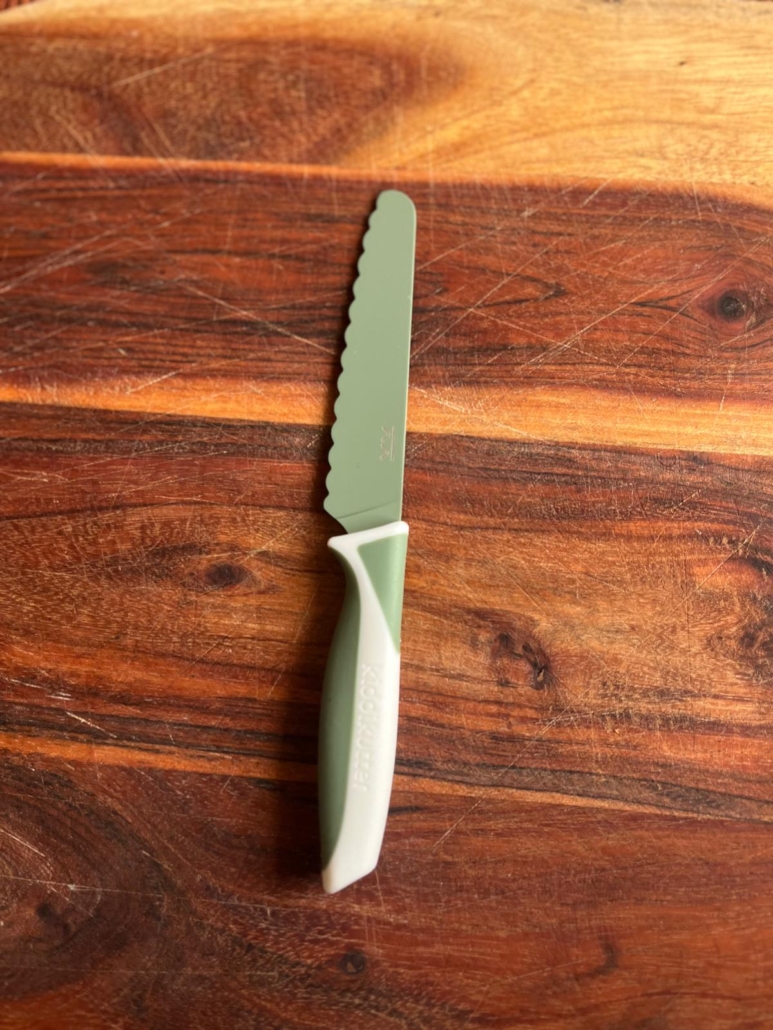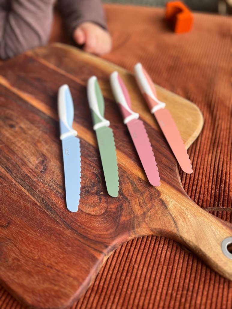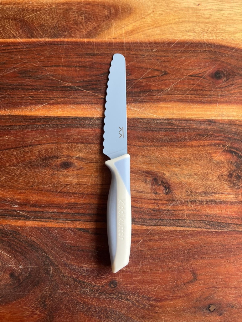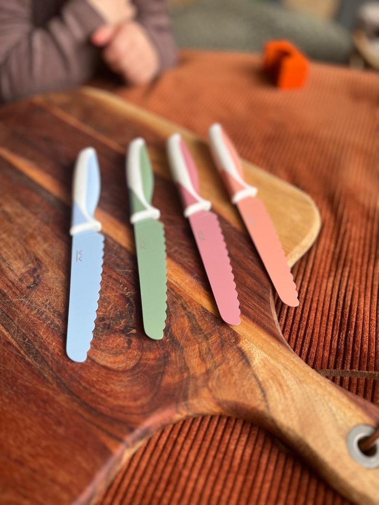 De KiddiCutter is speciaal ontworpen voor kleine handjes. Met een gekarteld roestvrijstalen blad en een stevige grip leren kinderen vanaf 3 jaar zelfstandig groente en fruit snijden – zonder risico op snijwonden.